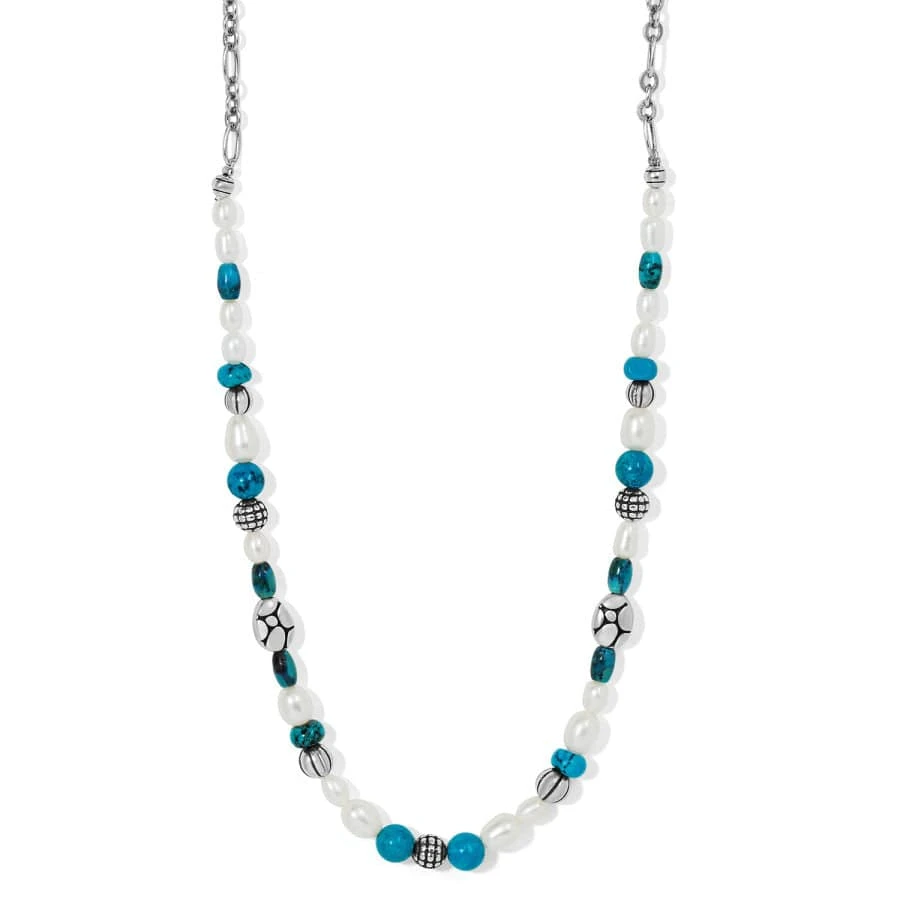 Our designer mixed in turquoise magnesite beads and freshwater rice pearls with her Balinese-inspired pebble mosaics for a stunning look. They also look sensational worn with the pebble-and-dot Medali Collection.