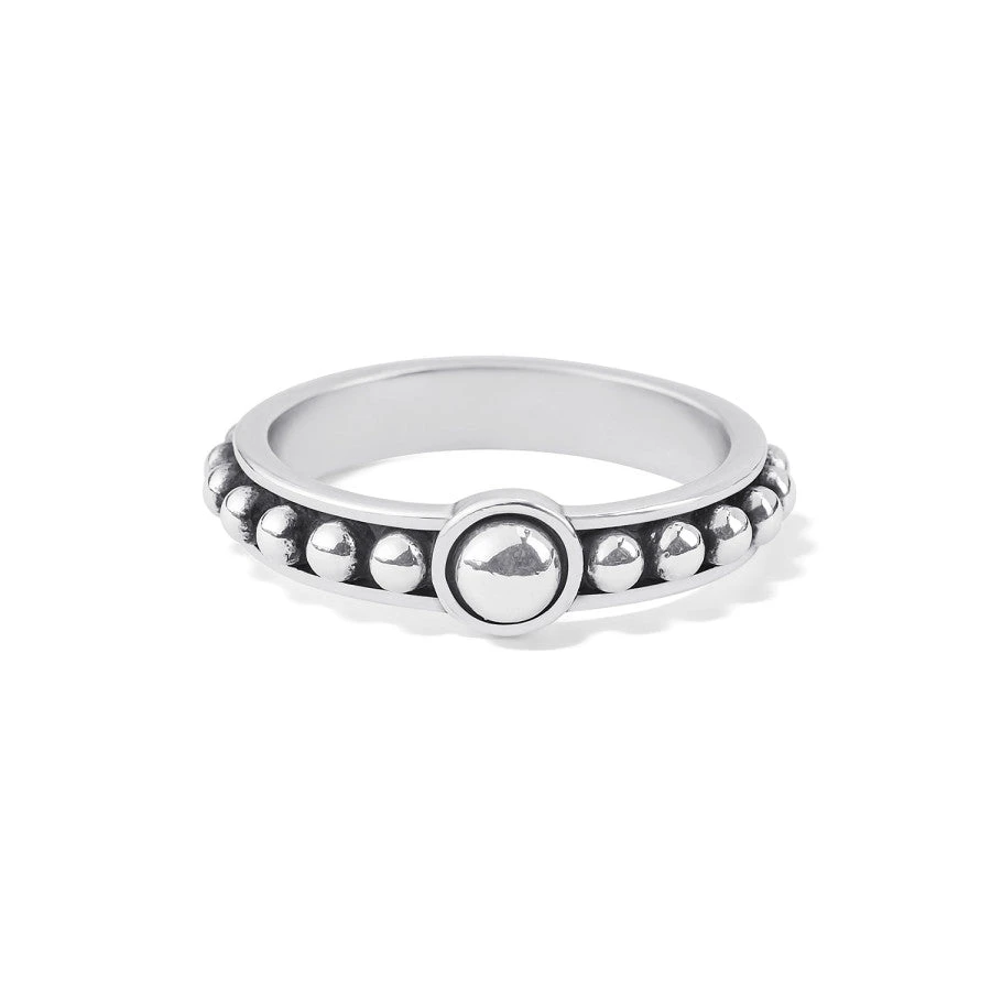 A channel of silver studs gives a cool and edgy look to this beaded ring.