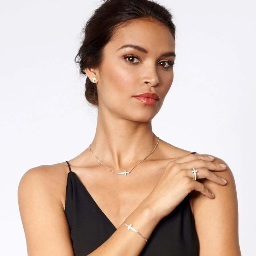 Inspired by the trail of a shooting star, the Starry Night Cross Necklace evokes wonderment. With a distinctly modern look, the cross rests on its side between two chains. Let its brilliance delight you!
